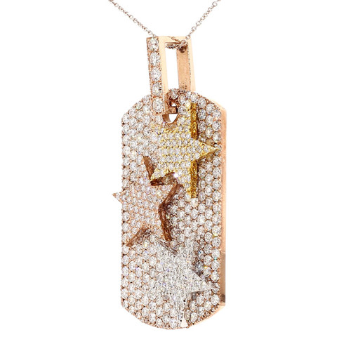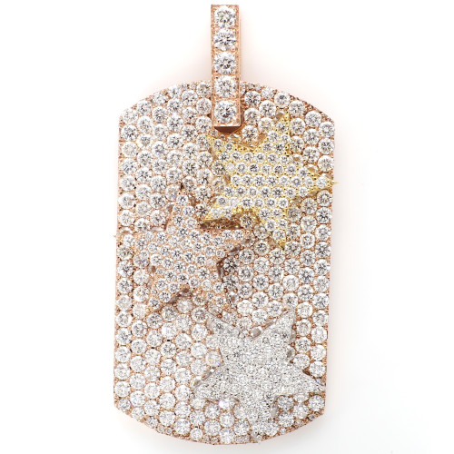 Adorned with an extravagant 14.5 carats of diamonds, the Diamond Tag exudes opulence and brilliance. The diamonds chosen for this piece boast a superior clarity level of VS, ensuring a dazzling sparkle with minimal inclusions. The color of these diamonds falls within the DEF range, representing the highest quality of near-colorless to colorless diamonds.