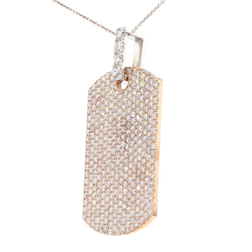 This diamond tag pendant exudes luxury and elegance. Crafted from 14 karat gold and weighing 27 grams, it offers both substance and style. Adorning the tag are a remarkable 11 carats of dazzling diamonds, creating a breathtaking display of brilliance. These diamonds boast exceptional clarity, graded as VS (Very Slightly Included), ensuring minimal inclusions visible under magnification. Additionally, they exhibit a pristine DEF color grade, representing diamonds with colorless purity. Whether worn as a standalone statement piece or paired with other jewelry, this diamond tag pendant is a symbol of sophistication and refinement.