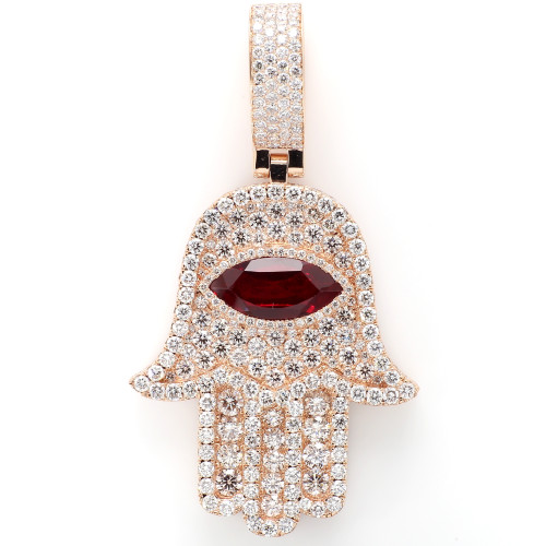 The Hamsa Ring with Ruby in Rose Gold is a stunning blend of spiritual symbolism and exquisite design. Crafted from lustrous rose gold, this ring features the protective Hamsa motif adorned with vibrant rubies. The diamonds, totaling 8 carats with G-H color and VS clarity, add a brilliant touch. Weighing 32 grams, the ring offers a substantial and luxurious feel on the finger. This unique piece, fusing the protective Hamsa with the richness of rubies and diamonds in rose gold, creates a statement of both spirituality and refined elegance.