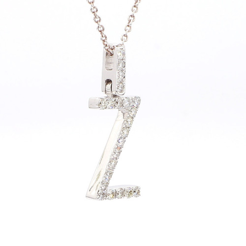 Introducing the Initial “Z” pendant, a personalized piece of elegance and charm. Crafted from lustrous 14-karat white gold, this pendant boasts a sleek and modern design. The centerpiece of the pendant features exquisite diamonds totaling between 0.5 to 0.7 carats, meticulously set to form the shape of the letter "Z". These diamonds showcase a remarkable combination of color and clarity, with a rating of DF and SI respectively, ensuring a captivating sparkle. With a weight of 1.5 to 2 grams, this pendant is lightweight and comfortable to wear. Add a touch of individuality and sophistication to your ensemble with this stunning Initial “Z” pendant.