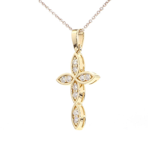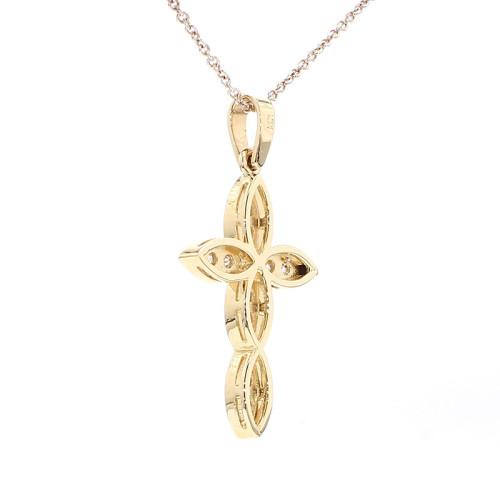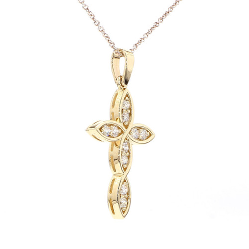 Introducing the Lady Cross, a graceful and elegant piece of jewelry crafted in lustrous yellow gold, with a weight of 2.5 grams. This cross pendant is adorned with a total of 0.37 carats of diamonds, creating a subtle yet radiant sparkle.