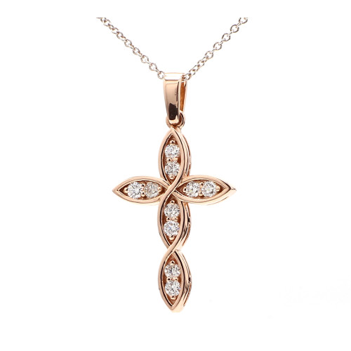 The Lady Cross in rose gold is a symbol of faith and feminine charm. Its lightweight design, combined with the warm tones of rose gold and the delicate sparkle of diamonds, makes it a versatile and sophisticated accessory. Whether worn for special occasions or as a daily expression of faith and style, this pendant adds a touch of timeless elegance to any ensemble. Ideal for those who appreciate both the sentiment and the beauty of a cross pendant.