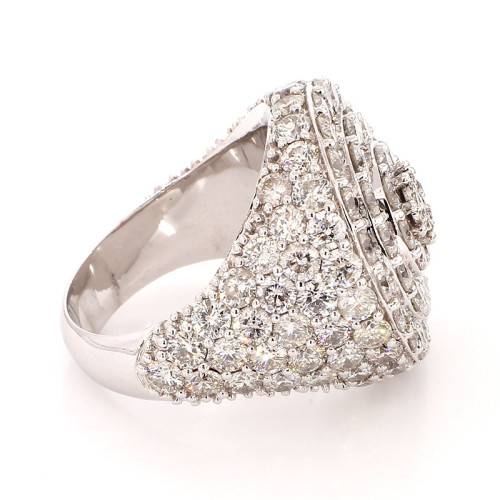 With a remarkable total diamond weight of 8.1 carats, this ring commands attention and makes a powerful statement. The substantial weight of 20.1 grams not only adds a sense of heft and quality but also ensures a comfortable and substantial feel when worn. The Men's Ring in White Gold is a symbol of timeless style and luxury, making it a versatile accessory for those who appreciate the combination of bold design and exquisite craftsmanship.