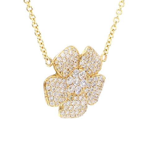 The Pave Flowers design in yellow gold adds a touch of femininity and sophistication to any ensemble. Whether worn for special occasions or as an everyday accessory, this necklace is a symbol of natural beauty and grace. Ideal for those who appreciate intricate and stylish jewelry inspired by nature.