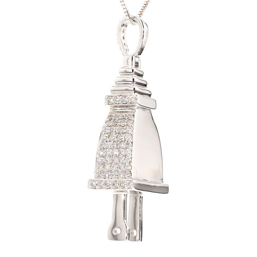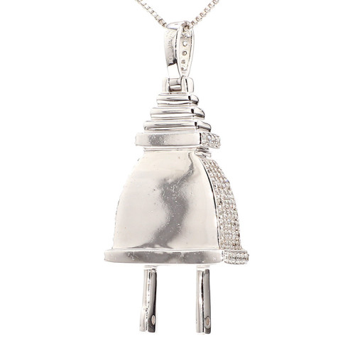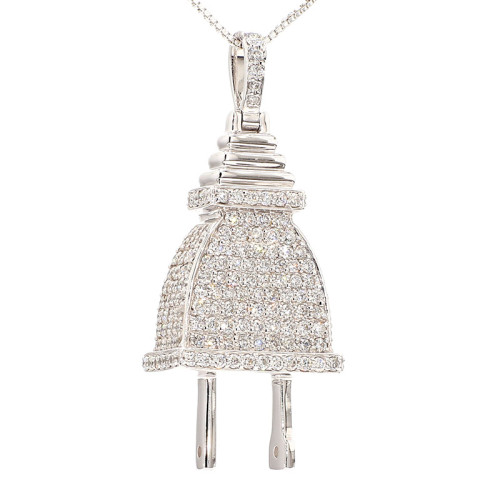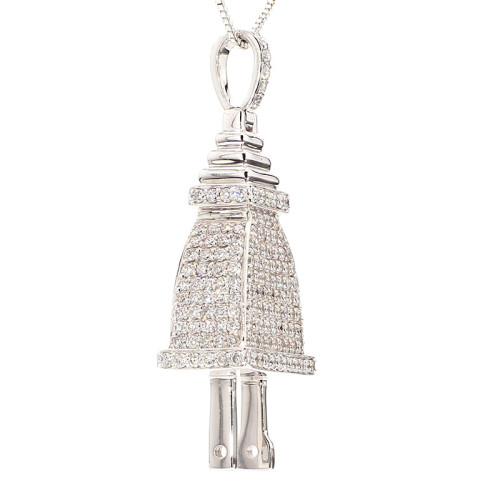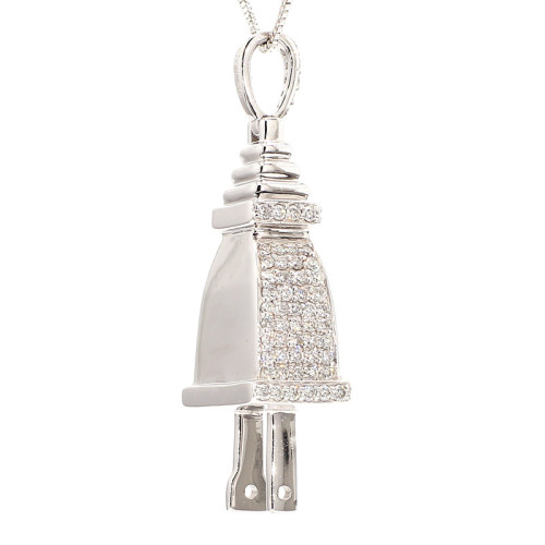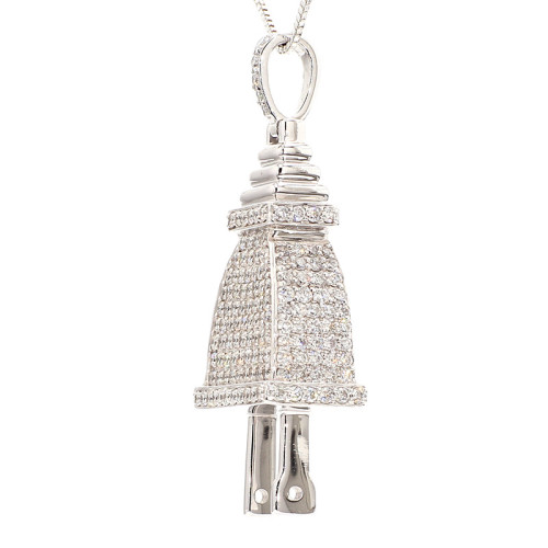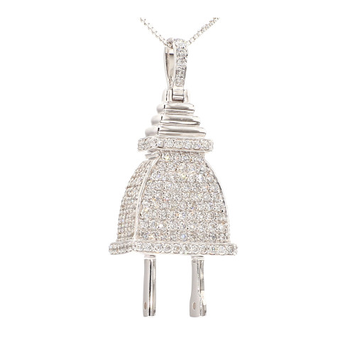 Introducing the Plug Pendant, a distinctive and elegant piece of jewelry crafted in refined white gold, weighing 12.57 grams. This pendant showcases a unique design that seamlessly blends modern style with sophistication.