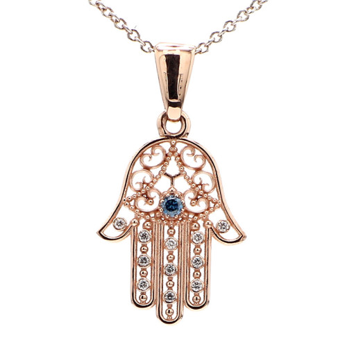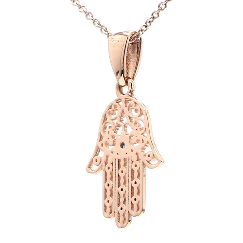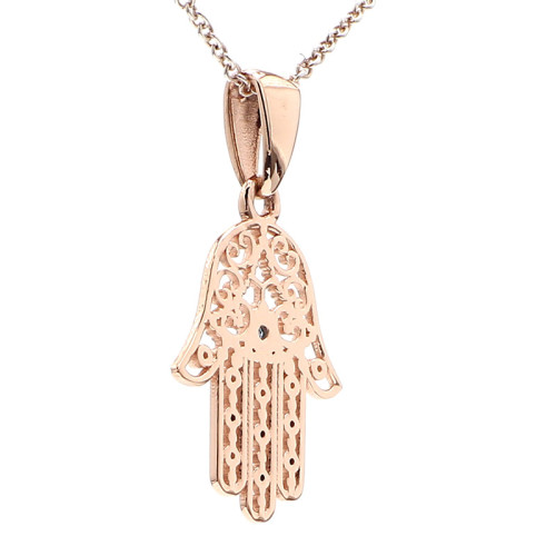 This Rose Gold Hamsa is a symbol of faith and style. Its lightweight design and the warm tones of rose gold make it a versatile accessory suitable for various occasions. Whether worn as a daily expression of faith or as a thoughtful and stylish gift, this pendant adds a touch of elegance to any ensemble. Ideal for those who appreciate both the symbolism of the Hamsa and the beauty of rose gold.