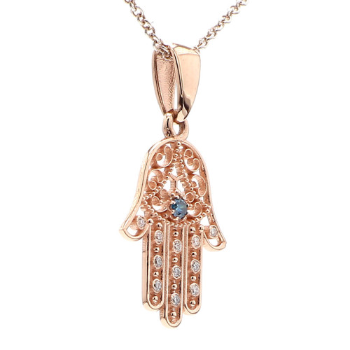 Adorned with a single 0.1-carat diamond, the Rose Gold Hamsa sparkles with understated elegance. The diamond adds a touch of sophistication to the Hamsa, symbolizing protection and blessings.