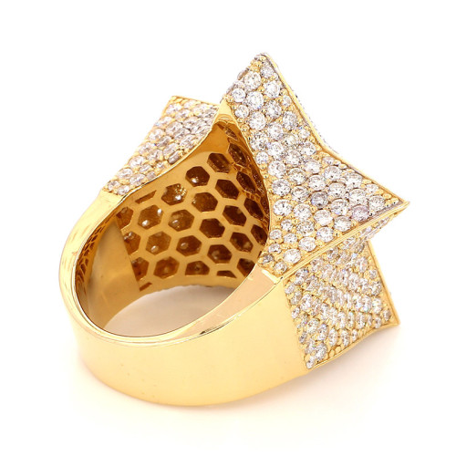 The Star Ring Two-Tone is a magnificent and eye-catching creation that seamlessly blends sophistication with celestial charm. With a dual-tone design, this ring features the radiant contrast of 14k white and yellow gold, adding a dynamic element to its aesthetic. The centerpiece of this celestial masterpiece is a collection of diamonds totaling an impressive 5.52 carats, boasting a luminous H color that enhances its brilliance. The diamonds exhibit an SI clarity, showcasing a dazzling sparkle with minor inclusions visible under magnification.
