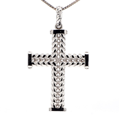 Introducing the White Gold Cross, a substantial and elegant piece of jewelry crafted in lustrous 14-karat white gold. This cross pendant weighs 6.3 grams, offering a significant yet graceful presence.
