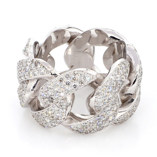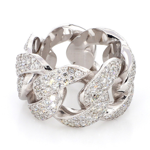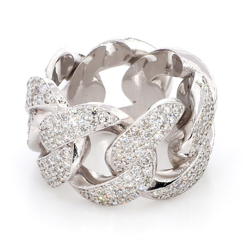 The design of the ring, inspired by the classic Cuban link, adds a touch of modernity to its enduring charm. The combination of white gold and the sparkling diamonds creates a sophisticated and versatile piece that can effortlessly elevate any ensemble. This White Gold Cuban Ring is more than just an accessory; it's a statement of refined taste and enduring style, making it an ideal choice for those who appreciate the fusion of classic and contemporary elements in their jewelry collection.