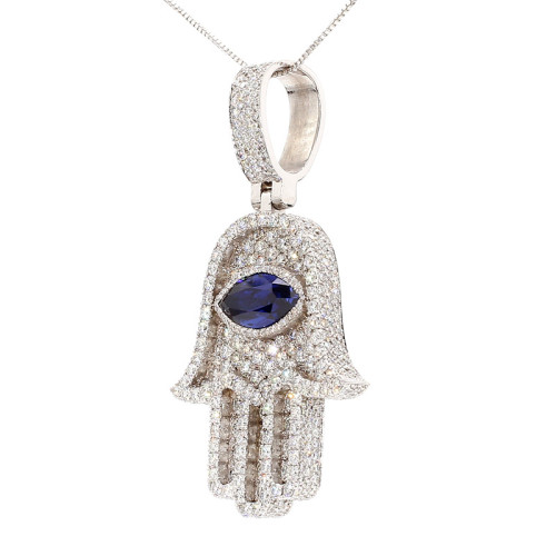 White gold hamsa whith sapphire