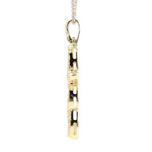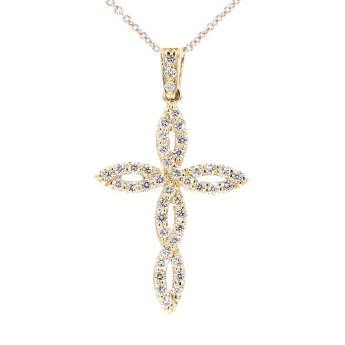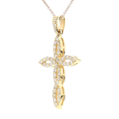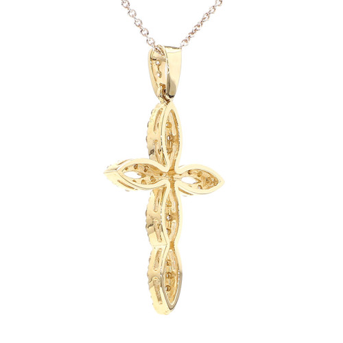 Adorned with a total of 0.63 carats of diamonds, the Yellow Gold Cross sparkles with subtle brilliance. The diamonds selected for this piece have a clarity of VS, indicating very slight inclusions that are typically not visible to the naked eye. The color of these diamonds falls within the GH range, representing a near-colorless quality.